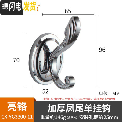 三维工匠衣钩家用壁挂衣帽钩卧室衣服单钩小挂钩卫生间浴室挂衣钩单个 YG3300亮铬
