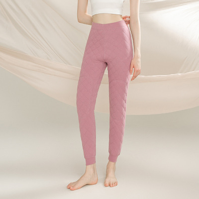 高腰羽绒蚕丝贴片护膝保暖裤女修身打底裤收腹提臀钢琴裤男士秋裤