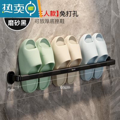 敬平卫生间厚底拖鞋架浴室免打孔墙上收纳器厕所壁挂挂架沥水置物架 磨砂黑-三人款[防潮耐淋]浴室置物架