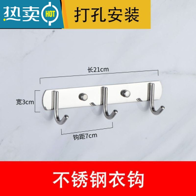 敬平挂钩墙壁挂挂衣架不锈钢厨房浴室毛巾挂衣钩衣服免打孔墙上粘钩 特厚201圆钩3钩[]浴室置物架
