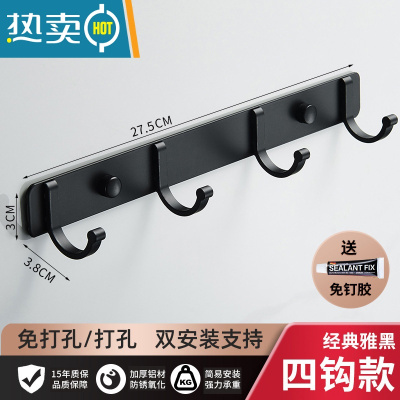 敬平免打孔挂毛巾器浴室卫生间门后挂架免钉毛巾架挂衣架凉毛巾架子 经典雅黑款 4钩子浴室置物架