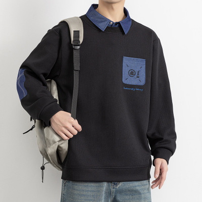 |早秋新款翻领款设计感毛卫衣男士秋早秋季上衣加益泰