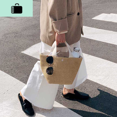 甜美气质设计2019早秋潮牌新款编织时尚百搭撞色手提水桶包包女NEW LAKE女斜挎包