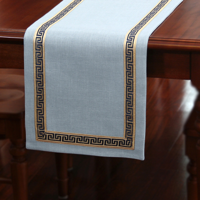 美式桌旗新中式茶旗布禅意席茶几桌布现代简约北欧床旗餐桌茶桌布 浅蓝色 33*240CM(适合1.8米餐桌或茶桌)