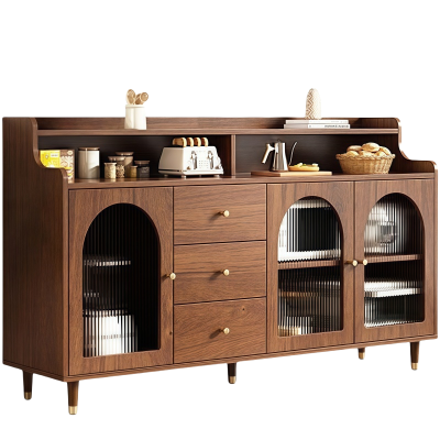 广亿隆仿古实木餐边柜酒柜茶水柜复古中式厨房微波炉碗柜