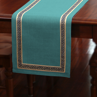 美式桌旗新中式茶旗布禅意席茶几桌布现代简约北欧床旗餐桌茶桌布 蓝绿色 33*200CM(适合1.4米餐桌或茶桌)