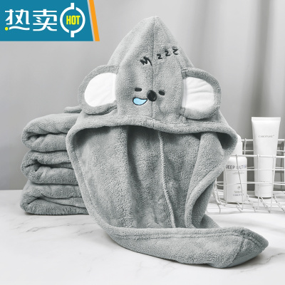 敬平稚优泉干发帽加厚吸水速干发巾可爱洗擦包头发毛巾女士浴帽珊瑚绒 抱抱熊干发帽(灰色)