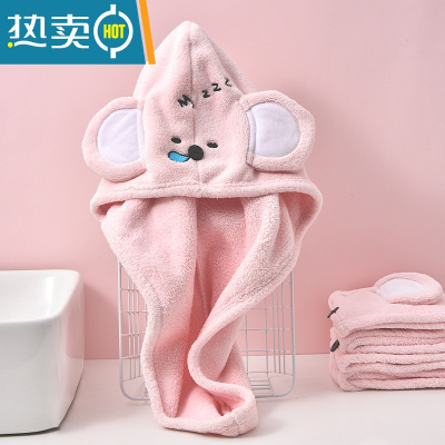 敬平稚优泉干发帽加厚吸水速干发巾可爱洗擦包头发毛巾女士浴帽珊瑚绒 抱抱熊干发帽(粉色)