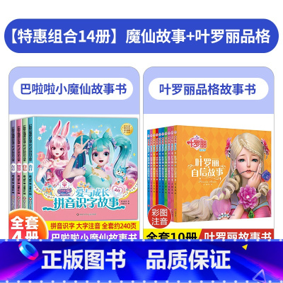 [14本]小魔仙+叶罗丽品格故事 [正版]巴啦啦小魔仙魔法星缘堡 爱与成长拼音识字故事儿童绘本故事书3一6岁注音版幼儿园