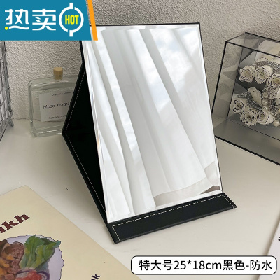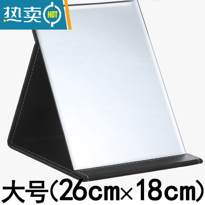 敬平镜子化妆镜折叠台式便携式高清学生宿舍公主女大小号桌面梳妆镜 特大号25×18cm黑色-防水便携式用镜