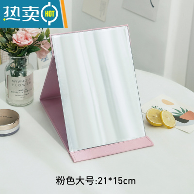 敬平随身便携公主镜皮质复古折叠镜卧室宿舍桌面台式化妆高清梳妆镜子 大号[粉色]便携式用镜