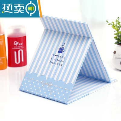 敬平镜子翻盖式可爱大号折叠迷你韩国学生小化妆韩版便携简约宿舍女生 蓝色竖条便携式用镜