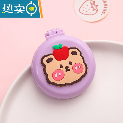 敬平梳子镜子一体便携蓝色油画月亮便携折叠翻盖式随身梳镜两用化妆镜 苹果小熊便携式用镜