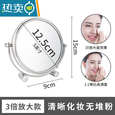 敬平台式化妆镜双面高清欧式3/5/10倍放大梳妆学生宿舍桌面便携小镜子 5英寸 12.5cm双脚款3倍放大便携式用镜