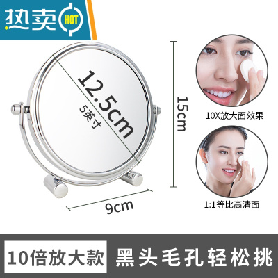 敬平台式化妆镜双面高清欧式3/5/10倍放大梳妆学生宿舍桌面便携小镜子 5英寸12.5cm双脚款10倍放大便携式用镜