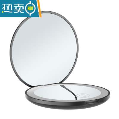 敬平便携随身小镜子led带灯补光USB充电2倍10倍放大折叠双面迷你圆形 黑色(2倍放大)送充电线 触摸开关可便携式用镜