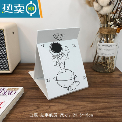 敬平网红镜子ins台式化妆镜女学生宿舍桌面折叠便携大小号随身梳妆镜 宝蓝色 白底-站宇航员便携式用镜