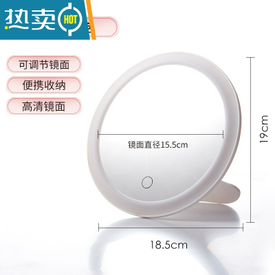 敬平LED化妆镜台式家用桌面便携折叠梳妆镜网红补光带灯学生宿舍镜子 蝴蝶脚化妆镜[白色·镜面款]便携式用镜