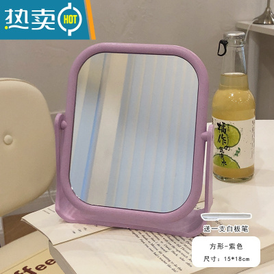 敬平ins风网红化妆镜家用桌面台式梳妆镜学生宿舍少女心双面镜子便携便携式用镜 紫色方形(有送笔)