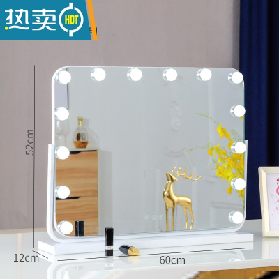 敬平化妆镜台式led灯镜子梳妆镜灯泡大号家用网红宿舍桌面补光镜便携式用镜 [旋转]横款白色60*52插电+3色