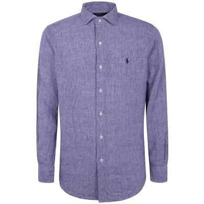 Polo Ralph Lauren男士定制修身亚麻长袖衬衫透气舒适宽松休闲衬衫