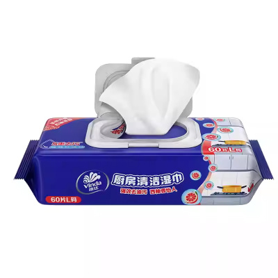 维达厨房湿巾60片强力去油去污家用抽取式纸抹布洁净油烟湿纸巾