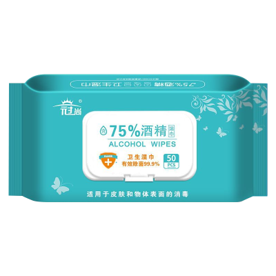 10包装75度酒精湿巾50抽一次性擦手巾家用清洁杀菌消毒湿巾C11918苏宁极物