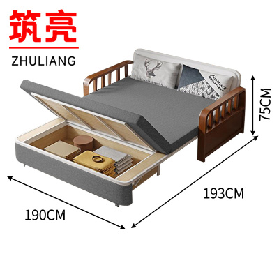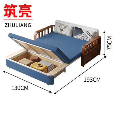森美人沙发床两用实木可折叠坐卧简易推拉储物客厅小户型双人多功能沙发