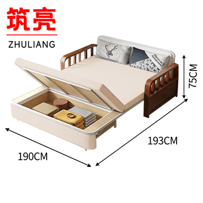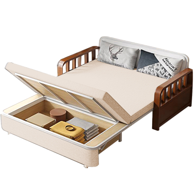 森美人沙发床两用实木可折叠坐卧简易推拉储物客厅小户型双人多功能沙发