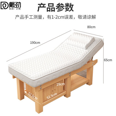 戴劲美容床理疗床推拿按摩床针灸床乳胶款原木腿白垫190*80cm带柜