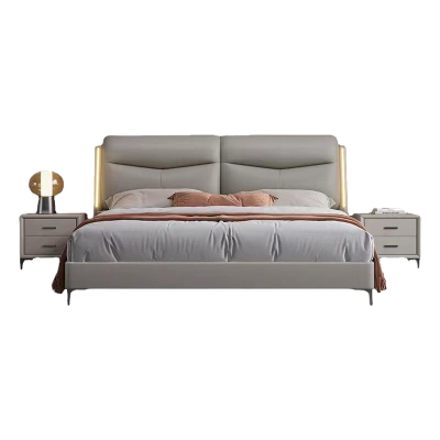 意式真皮床轻奢现代简约双人床主卧室带灯实木储物床家用软包婚床