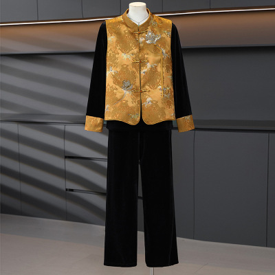 金丝绒洋气妈妈套装女时尚国风三件套中老年套装女春装新款衣服薄
