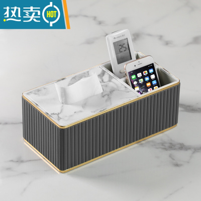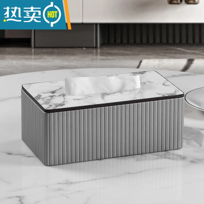 敬平纸巾盒客厅轻奢简约现代家用餐桌创意设计高级感抽纸盒ins风 轻奢款纸巾盒-深灰色意式条纹小号