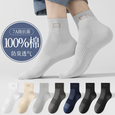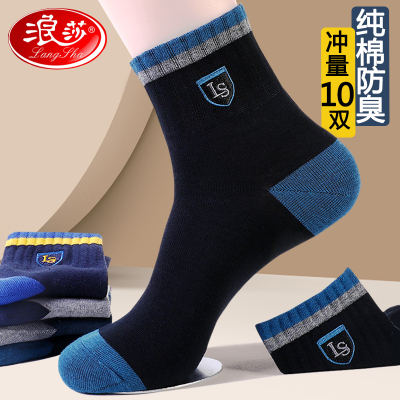 浪莎男款袜子男袜纯棉防臭运动中筒袜男士全棉袜长袜春秋冬季