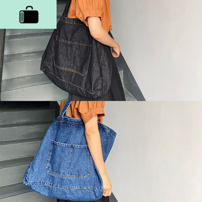 小红狗 牛仔单肩大容量手提复古腋下包文艺帆布包休闲单肩包NEW LAKE女士单肩包