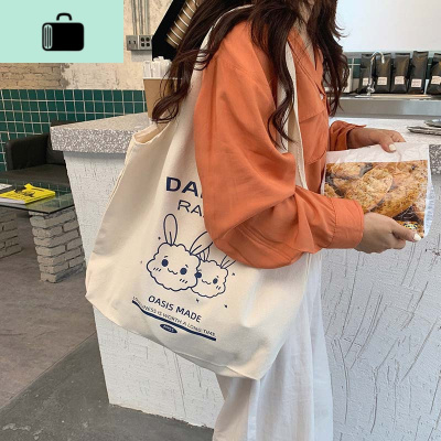 大容量白色上班帆布包 女单肩学生日系ins文艺慵懒风布袋NEW LAKE女士单肩包