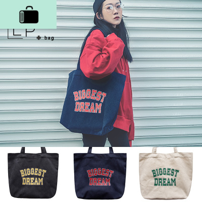 韩风大字母三色超百搭大容量单肩帆布包袋NEW LAKE女士单肩包