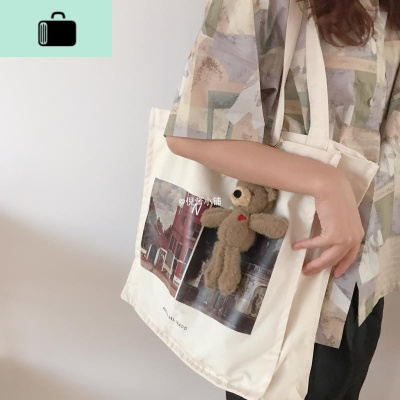 多用帆布包ins单肩斜跨学生包韩版大容量双肩手提帆布包NEW LAKE女士手提包