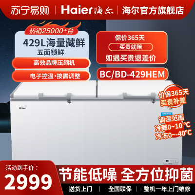 [品牌补贴]Haier海尔冷柜 小型家用429升冷冻冷藏转换柜 一机六用深冷锁鲜健康抑菌断电保护卧式小冷柜
