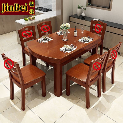 戴劲 餐桌家用餐桌餐椅组合餐桌小户型可伸缩多功能饭桌1.5海棠1桌6