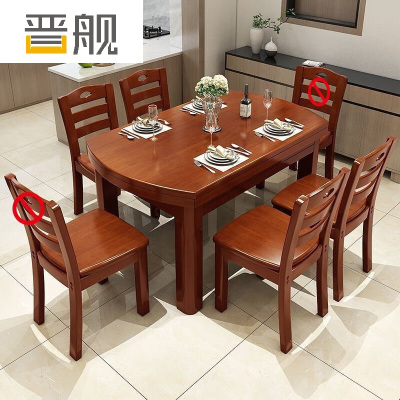 晋舰 餐桌家用餐桌餐椅组合餐桌小户型可伸缩多功能饭桌 1.5海棠1桌6