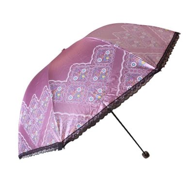 天堂伞 33042E民族旋风黑涤彩胶伞三折超细铅笔伞黑色蕾丝花边晴雨伞 海棠红