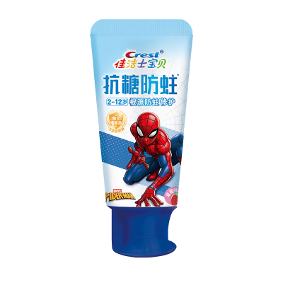 佳洁士抗糖防蛀2-3-6-12岁儿童牙膏蜘蛛侠款60g草莓味