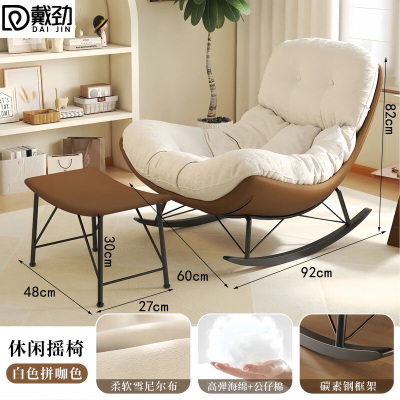戴劲摇摇椅懒人沙发可躺可睡摇椅客厅阳台躺椅[米白色]棕色底+脚踏