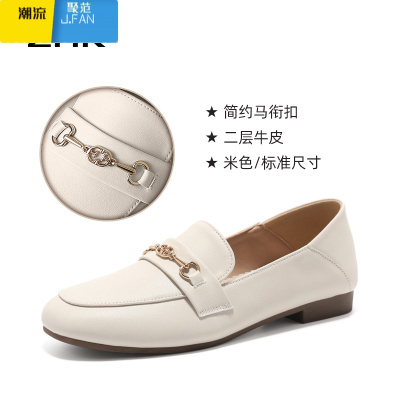 聚范女鞋2024新款平底单鞋乐福鞋一脚蹬懒人小皮鞋子秋