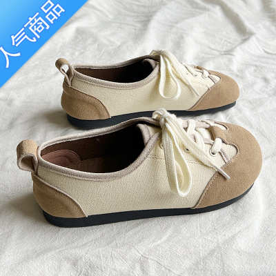 SUNTEK帆布单鞋女鞋秋款夏季新款一脚蹬晚晚鞋百搭懒人鞋休闲平底渔夫鞋