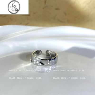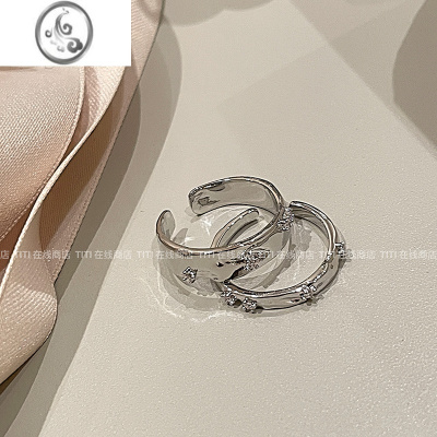 JiMi银色素圈锆石开口戒指套装女冷淡风气质情侣指环时尚个性食指戒潮