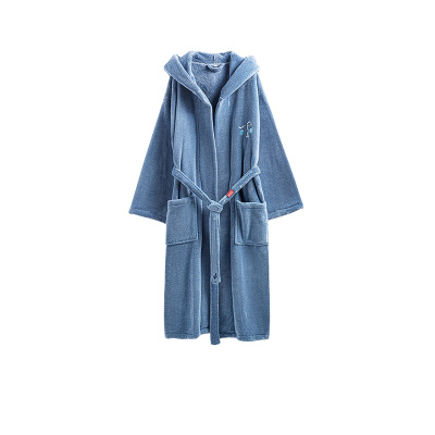 竹一百 酒店宾馆毛巾料浴袍浴衣全棉割绒情侣通用简约中长加厚秋冬睡袍