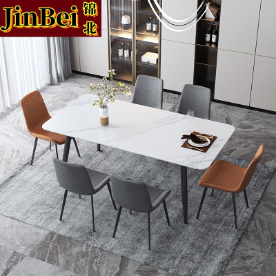 锦北岩板餐桌椅组合新中式家用现代简约方形饭桌小户型1.4米一桌6椅