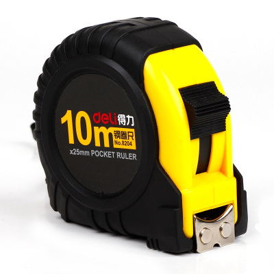 得力8204钢卷尺10m(黄)(1把) 双制动耐用工程钢卷尺子伸缩尺 测量工具